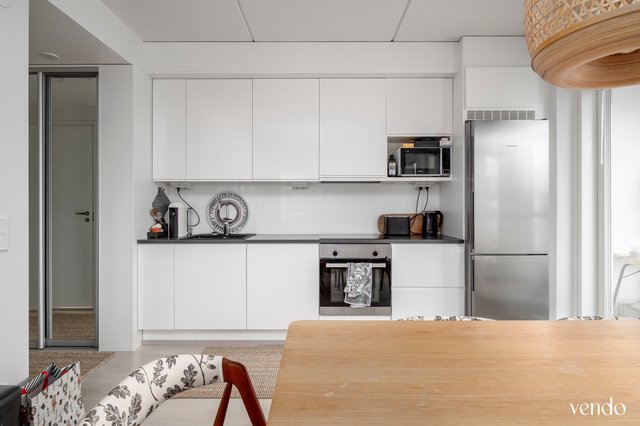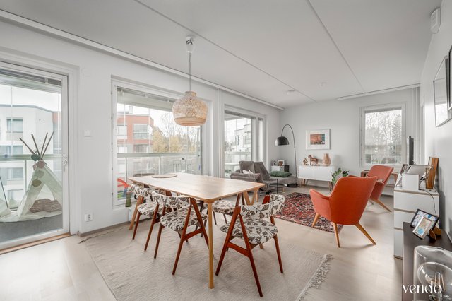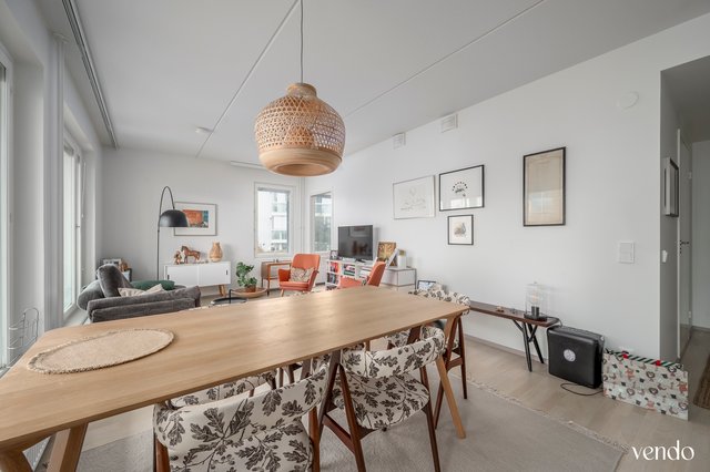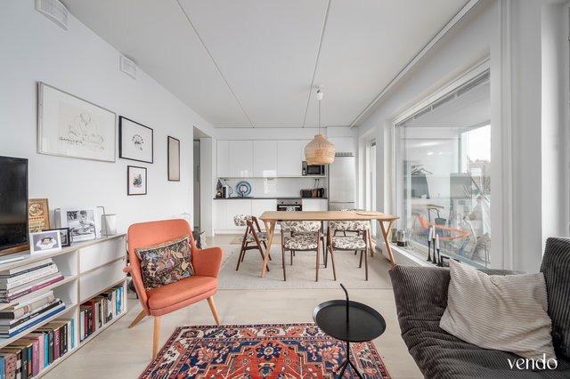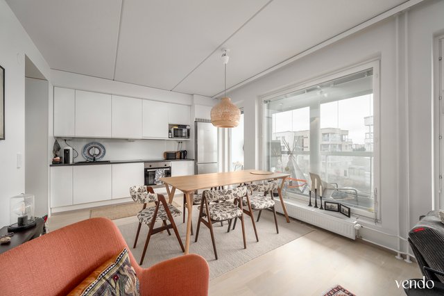 Avoin keittiö on varustettu laadukkailla kodinkoneilla, ja olohuoneen laminaattilattia luo modernin ja kodikkaan tunnelman. Makuuhuoneen rauhoittava sisustus ja kylpyhuoneen laatoitus tekevät arjesta sujuvaa ja viihtyisää. Asunnossa on myös koneellinen ilmanvaihto, joka takaa raikkaan sisäilman ympäri vuoden.