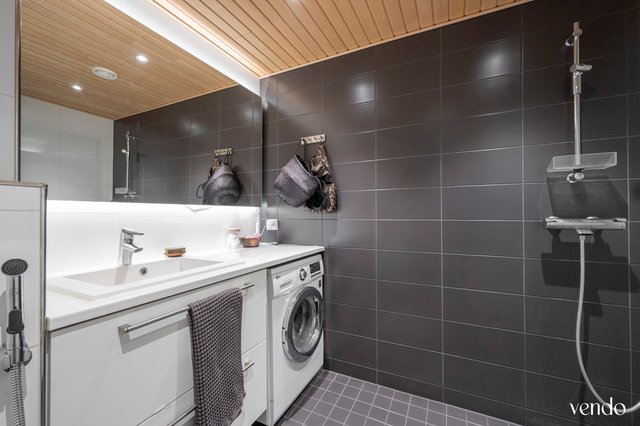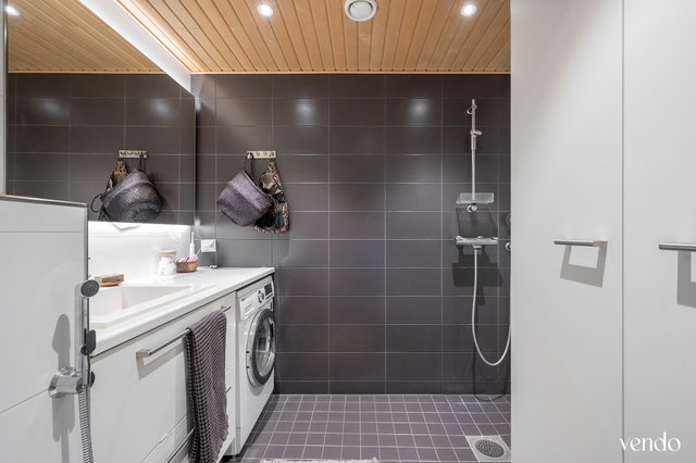 - WC-istuin, suihku, pesukoneliitäntä, peili, pesuallas, ja bidee-suihku
