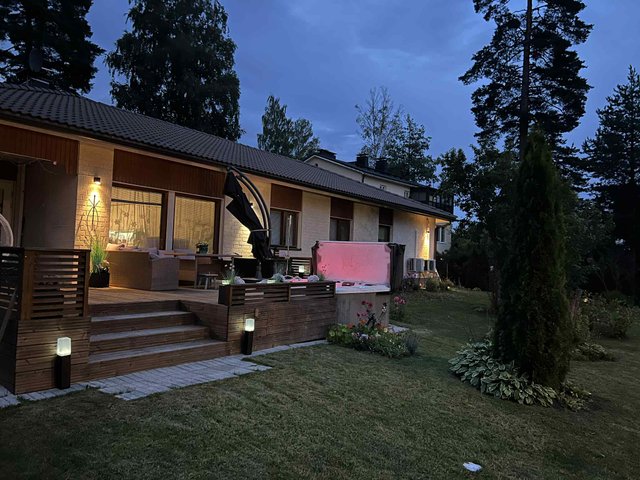 - Ilmalämpöpumput 3 kpl (eteinen, autotalli sekä olohuone). Ulkoporeallas.