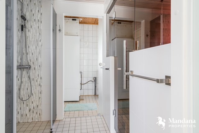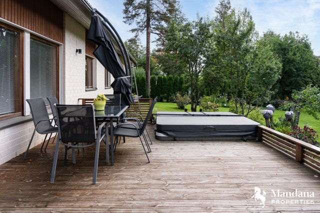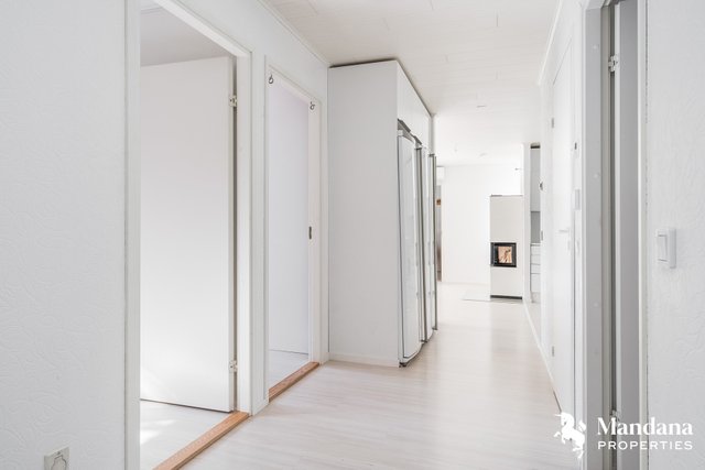 Kodista löytyy neljä makuuhuonetta. Kodinhoitohuone ja vaatehuone tarjoavat käytännöllisyyttä ja tilaa arjen tarpeisiin. Modernista keittiöstä löytyy runsaasti kaappitilaa ja työskentelytilaa. Olohuoneen tunnelmaa lisää kaunis takka. Lisäksi talossa on puulämmitteinen sauna ja pukuhuone, josta käynti terassille. Talon yhteydessä on autotalli. Piha tarjoaa aurinkoisen ja suojaisan ympäristön, jossa on mukava viettää aikaa. Pihapiirissä on myös kaksi ulkovarastoa, jossa reilusti säilytystilaa. Terassiin upotettu ulkoporeallas kutsuu rentoutumaan.