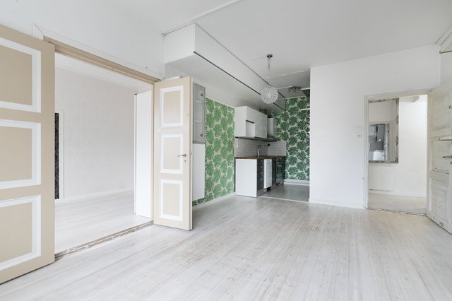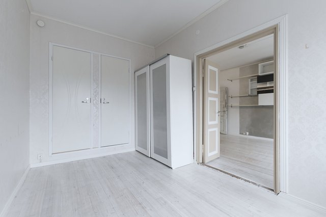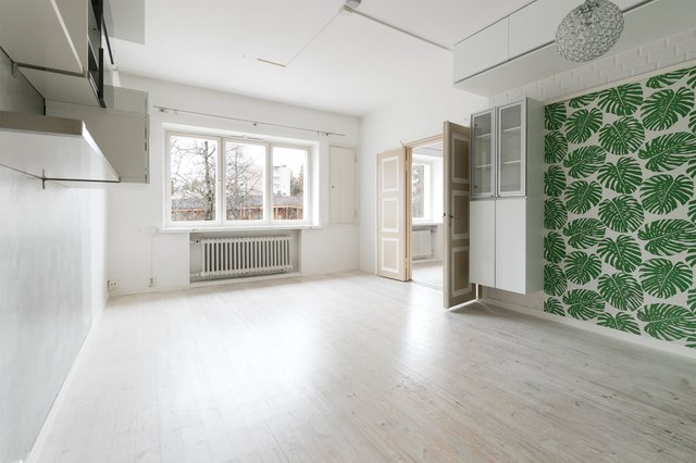 Tervetuloa tutustumaan tähän viehättävään kaksioon Jyväskylän Vaajakoskelle, osoitteeseen Vesmannintie 1. Kolmannessa kerroksessa sijaitseva 40 m²:n asunto tarjoaa harkitun ja toimivan pohjaratkaisun, jossa arjen sujuvuus ja vanhan talon tunnelma kohtaavat. Vuonna 1938 rakennetun taloyhtiön aikakauden henki näkyy kauniisti asunnon leveissä ikkunapenkeissä sekä lautalattiassa. Makuuhuoneen ja olohuoneen väliin jäävät elegantit pariovet tuovat kokonaisuuteen lisää avaruutta ja persoonallisuutta.