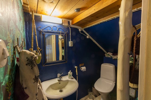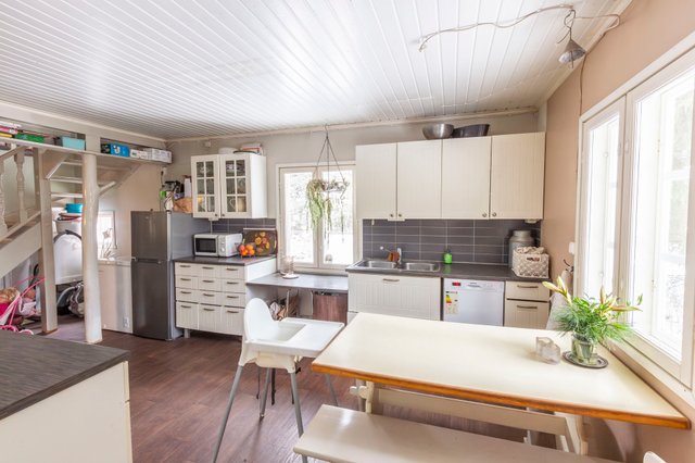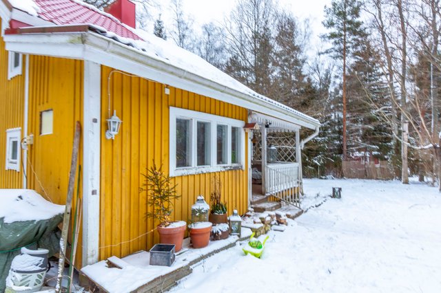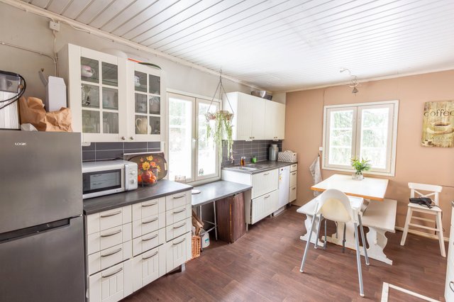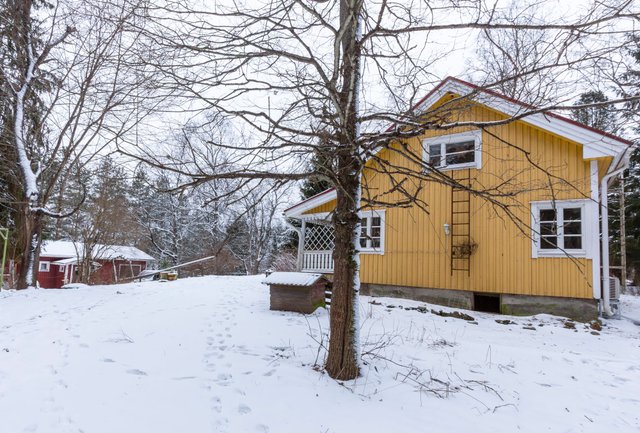 - Talousrakennuksessa takkkahuone, wc, pesutila, puusauna ja pesuhuone sekä autotalli talousrakennuksen toisessa päädyssä. Pikku mökissä ollut noin 10 vuotta sitten kanala.