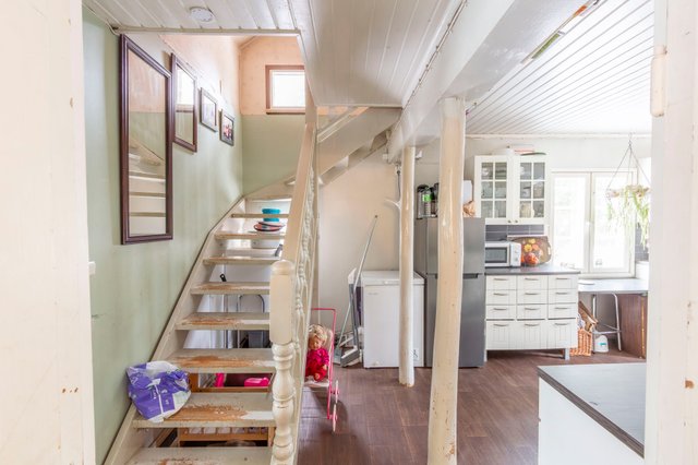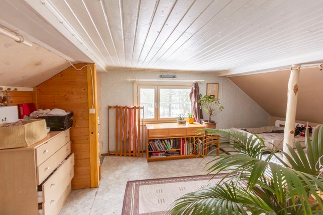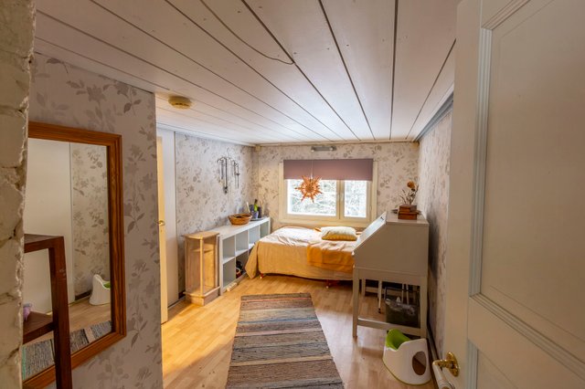 - Yläkerrassa kaksi makuuhuonetta, joiden max korkeus 2 m.