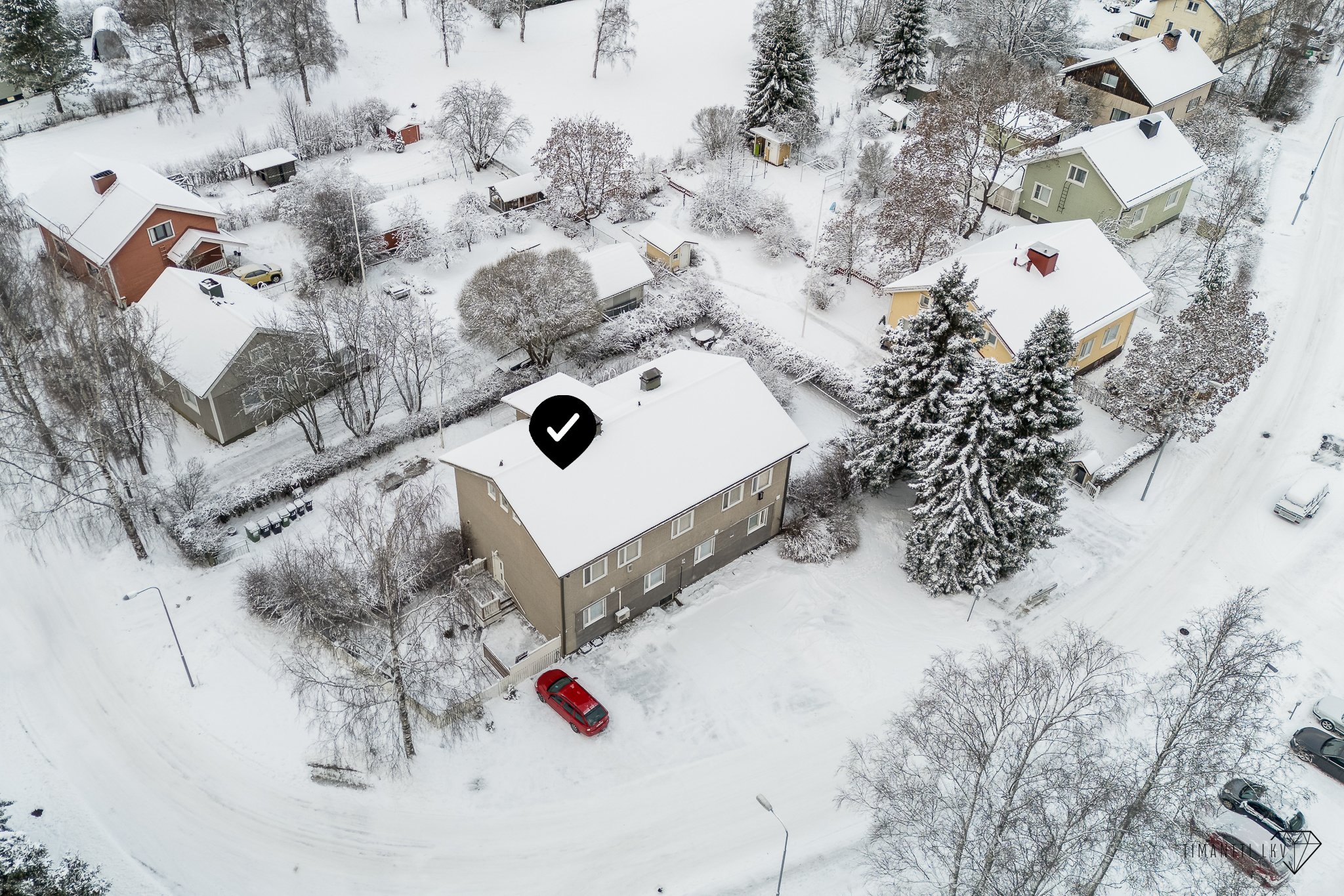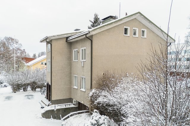 Vuoden 1955 rakennus on saneerattu asuinhuoneistoiksi vuonna 2006 ja on todellinen löytö. Läpitalon huoneisto tarjoaa kauniit vehreät näkymät olohuoneesta ja keittiöstä, kun taas kylpyhuoneesta ja toisesta makuuhuoneesta avautuu suojaisat näkymät taloyhtiön sisäpihalle.
