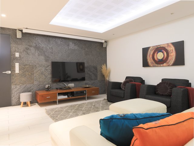 Talon alakerrassa sijaitseva kaksi makuuhuonetta, elokuvahuone, kodinhoitohuone sekä sauna- ja spa-osasto tarjoaa todellista luksusta arkeen. Koko talossa on Sonos äänentoistojärjestelmä.