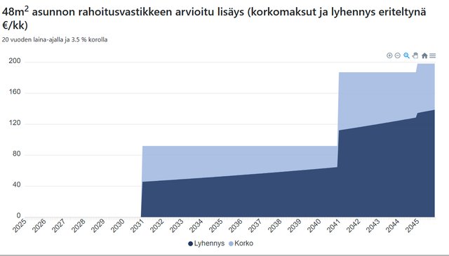 - Hoitovastike 259 € / kk (5,40 € / m²), Rahoitusvastike 153,60 € / kk (3,20 € / m²), Yhtiövastike yhteensä 412,60 € / kk