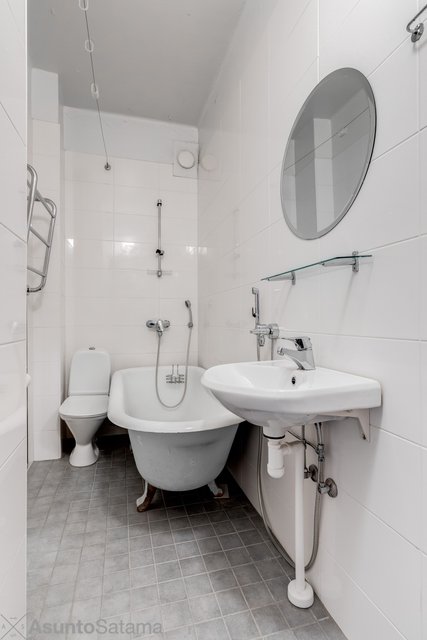 - WC-istuin, kylpyamme, suihku, rättipatteri, pesuallas, ja peili