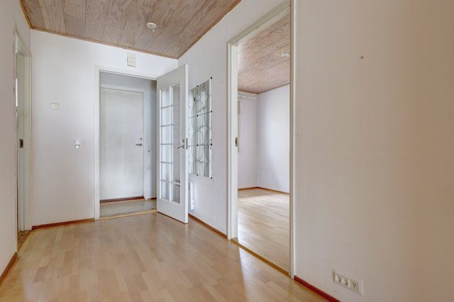 Vuonna 1985 valmistunut asunto tarjoaa 71 neliötä toimivaa tilaa yhdessä tasossa. Olohuoneessa on tunnelmallinen takka, joka tuo lämpöä ja viihtyisyyttä. Alunperin kolmioksi rakennettu asunto on muutettu tilavaksi kaksioksi, ja toisen makuuhuoneen rakentaminen on helposti toteutettavissa.