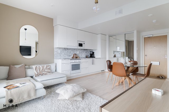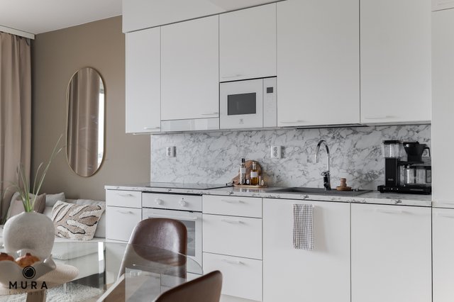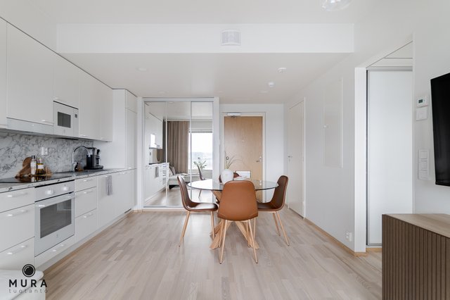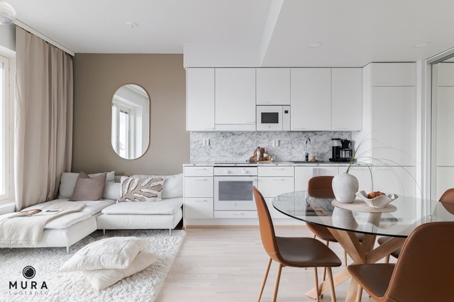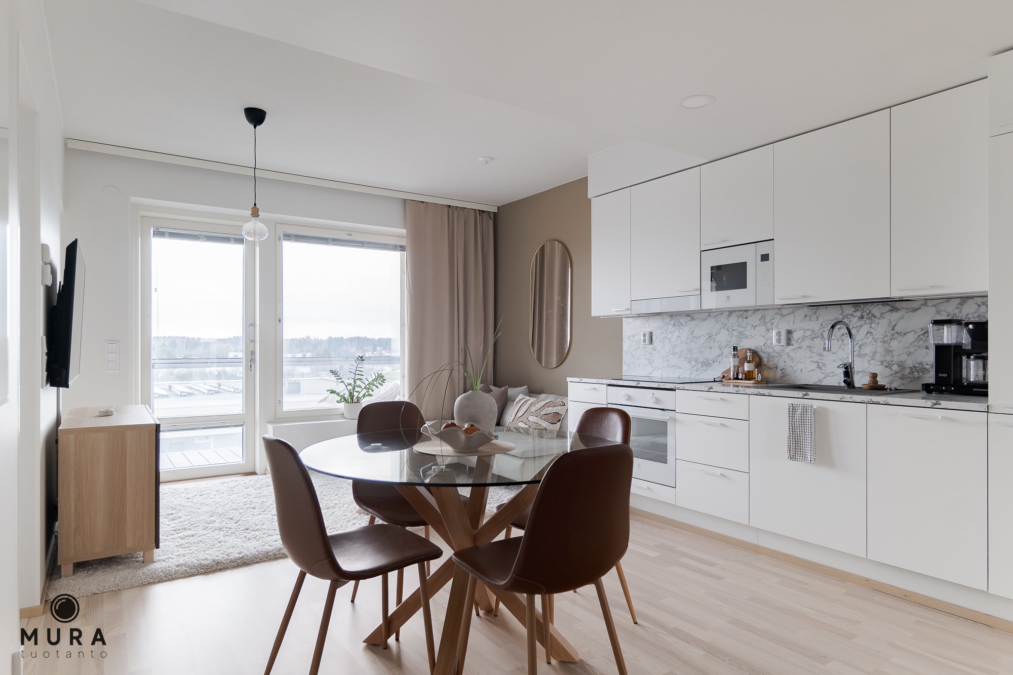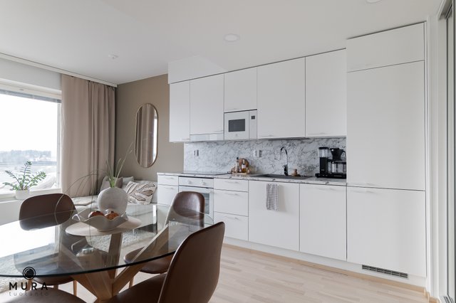 Asunnossa on avokeittiö jota on päivitetty jo rakennusvaiheessa paremmilla materiaaliratkaisuilla. Keittiö on varusteltu laadukkailla kodinkoneilla, kuten integroidulla astianpesukoneella ja jääkaappipakastimella sekä induktioliedellä. Koko asunnossa on asumismukavuutta lisäävä vesikiertoinen lattialämmitys, mikä tuo arjen luksusta.