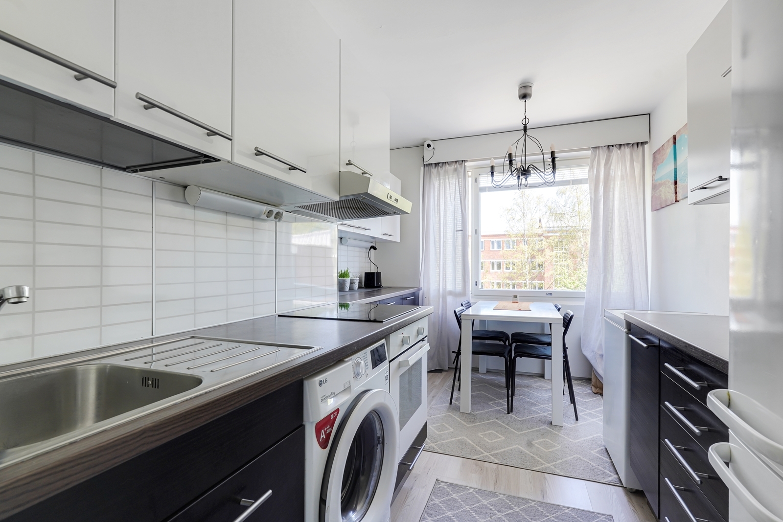 - Jääkaappipakastin, liesi, erillisuuni, liesituuletin, ja kiinteät valaisimet, varattu paikka astianpesukoneelle