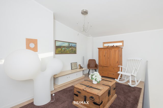 - Alakerrassa kaksi huonetta, toinen toimii tällä hetkellä työhuoneena ja toisessa tv-huone. Yläkertaan sijoittuu kolme makuuhuonetta, päämakuuhuoneen yhteydessä vaatehuone, pukeutumistila, suihkuhuone ja parveke. Kaksi makuuhuoneista jakavat yhden vaatehuoneen. LATTIA: parketti, työhuoneen lattiassa korkki. SEINÄT: rapattu, maali
