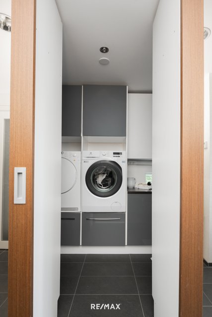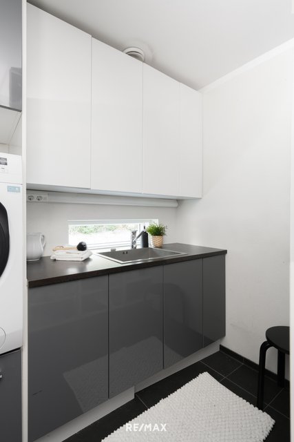 - Käytännöllinen kodinhoitotila, jossa paljon säilytystilaa. Uloskäynti. VARUSTEET: vesipiste, allas, pyykinpesuliitäntä, pyykkikaappi, kaapistot. LATTIA: laatta, lattialämmitys SEINÄT: rappaus