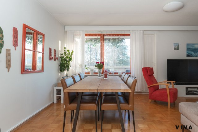 Hyväkuntoinen ja avara ylimmän kerroksen asunto. Oma sauna ja lasitetulta parvekkeelta näkymä järvelle. Hyvien palveluiden ja toimivien liikenneyhteyksien lisäksi uimarantaan on vain lyhyt kävelymatka!