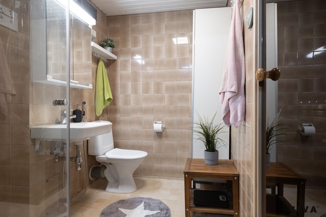 - WC-istuin, suihku, lattialämmitys (vesikierto), ja suihkuovet