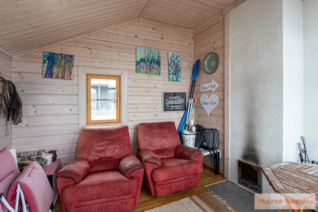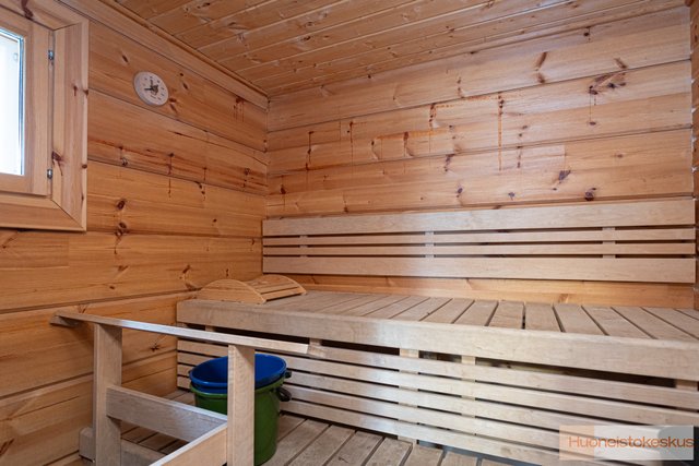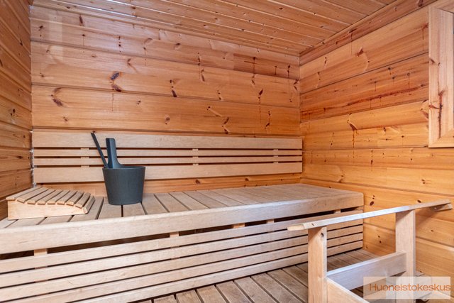- Rantasauna, pinta-ala noin 15,9 m2 valmistunut 2009. Kelkkatalli/halkovaja. Pinta-ala noin 24 m2. Valmistunut 2010. Pinta-alatiedot on saatu kohdetta koskevista asiakirjoista eikä niitä ole tarkistusmitattu. Huoneistoilla A ja B on kullakin lämmin varasto rakennusten välissä. Tekninen tila.