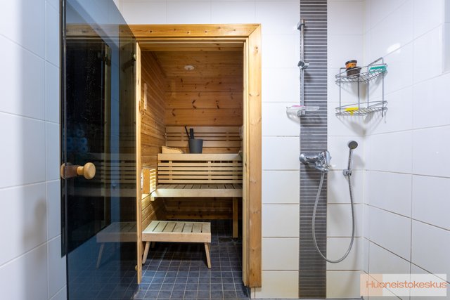 - Molemmissa huoneistoissa on samanlainen saunaosasto.