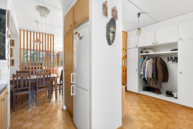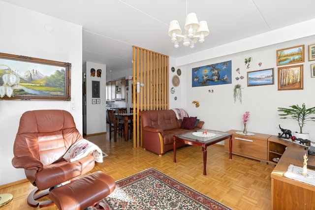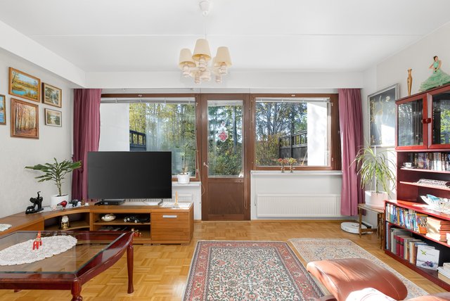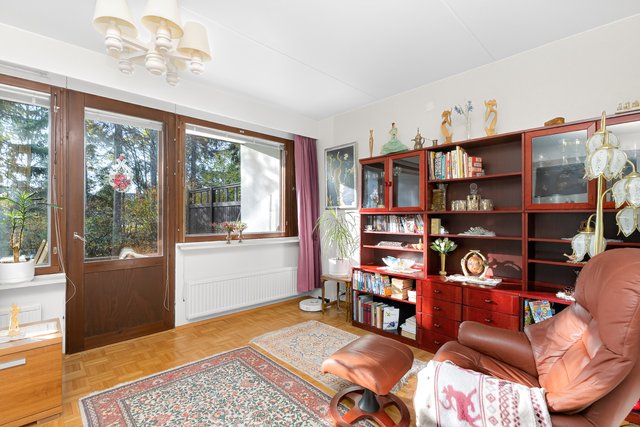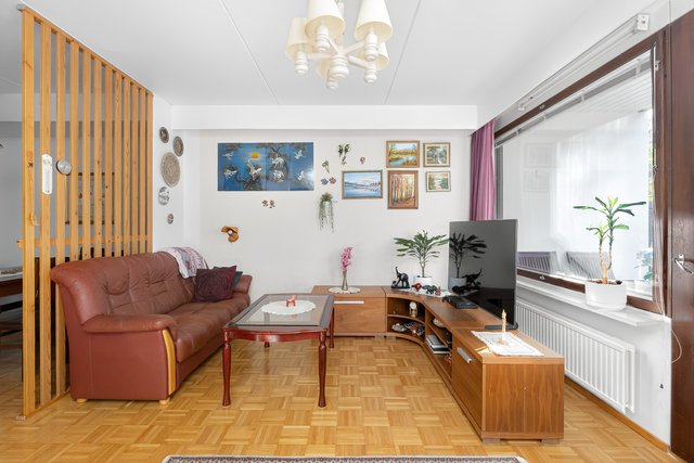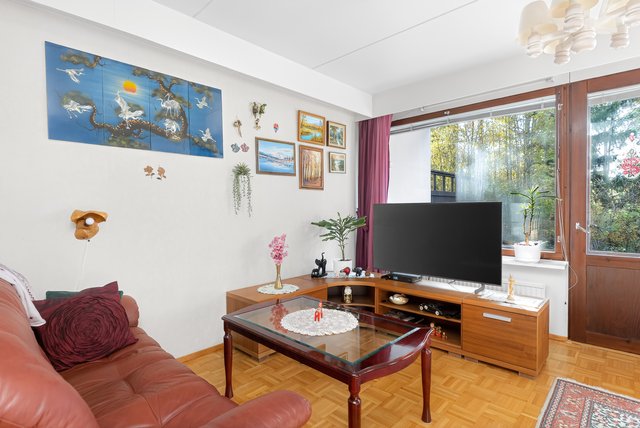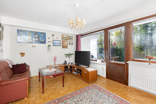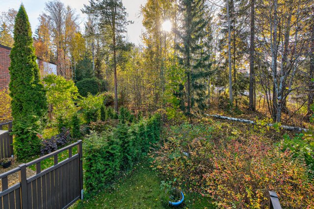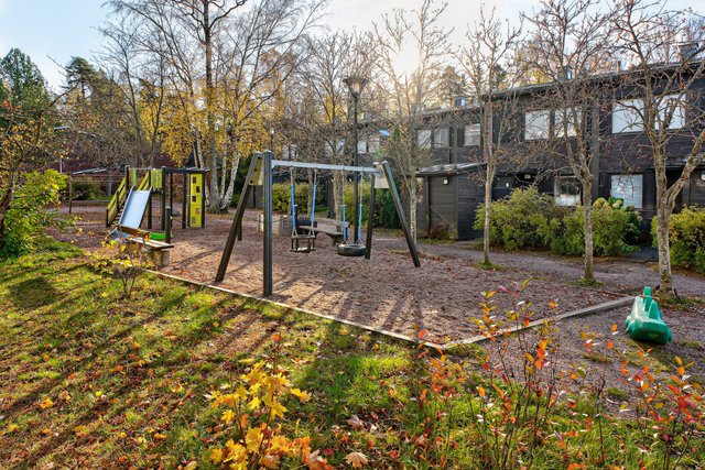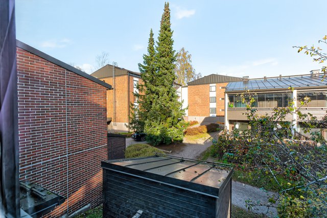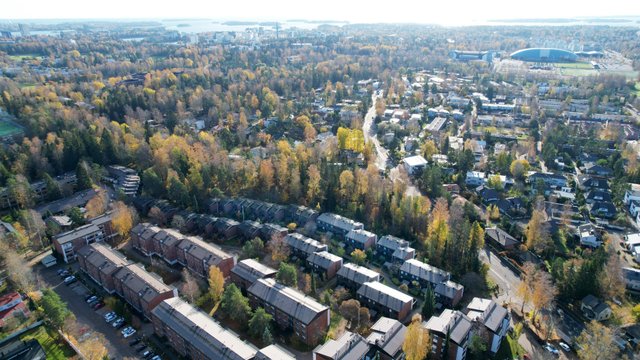 Sijainti on toimiva - rauhallinen asuinalue, josta on hyvät liikenneyhteydet. Lähin bussipysäkki on vain 80 metrin päässä, ja Urheilupuiston metroasemalle on noin 1,8 km matka. Alueella on useita kouluja ja päiväkoteja, ja palvelut löytyvät kätevästi lyhyen matkan päästä.