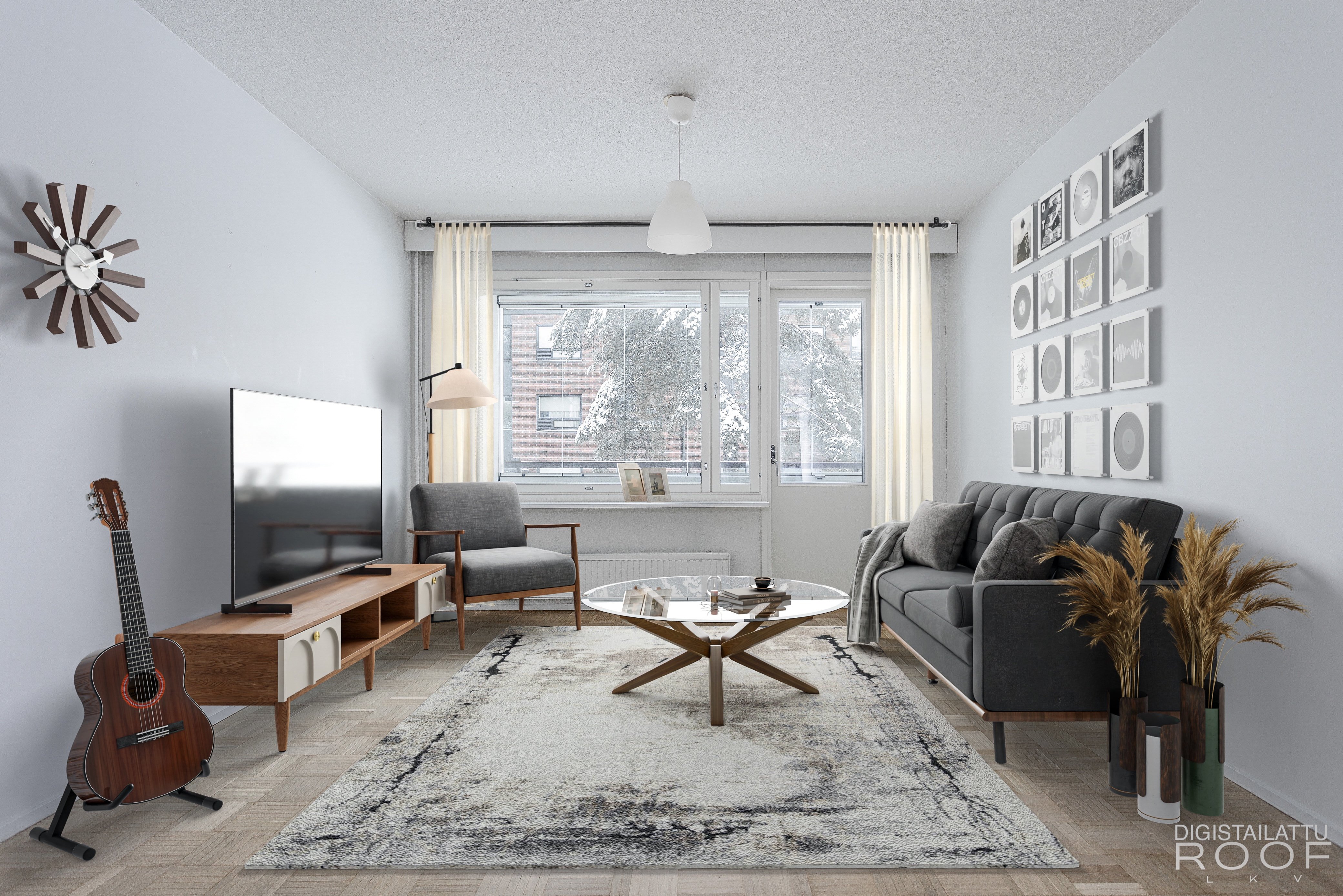 Tässä kodissa on mukavasti tilaa niin elämiseen kuin rentoutumiseen. Suuret ikkunat päästävät reilusti luonnonvaloa sisään ja tilavat olo- ja makuuhuone mukautuvat juuri itsellesi sopiviksi. Makuuhuoneesta löytyy myös koko seinän verran säilytyskaappeja. Raikkaan vaalea kylpyhuone ja tunnelmallinen sauna tuovat arkeen ylellisyyttä. Olohuoneesta pääsee myös omalle lasitetulle parvekkeelle nauttimaan raikkaasta ilmasta vuodenajasta riippumatta.