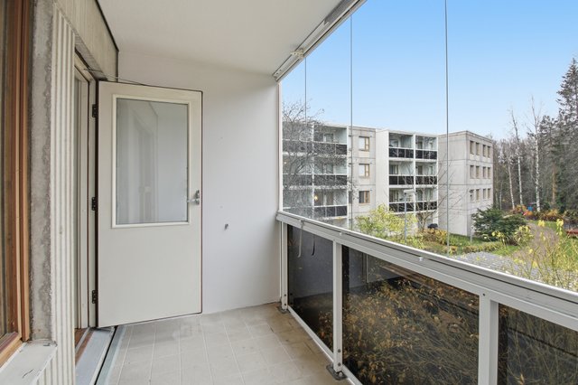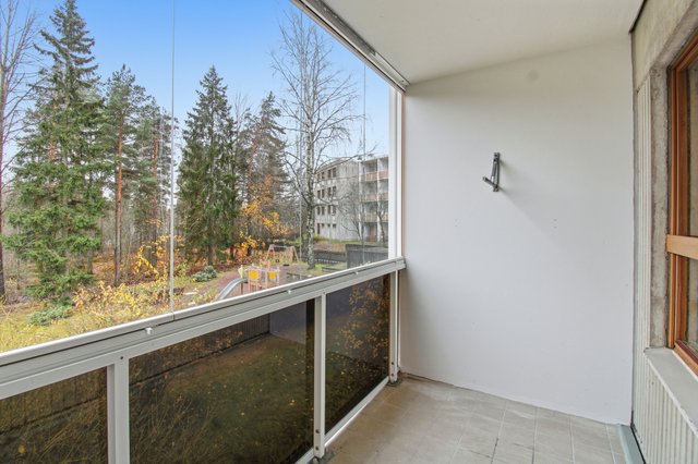 Etelään avautuva lasitettu parveke on täydellinen paikka rentoutua ja nauttia ulkoilmasta.