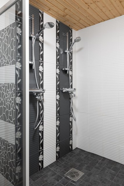 - Suihku, suihkuseinä, ja pesukoneliitäntä