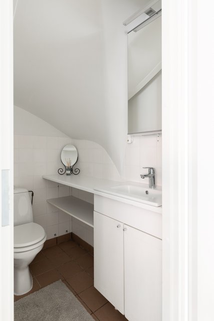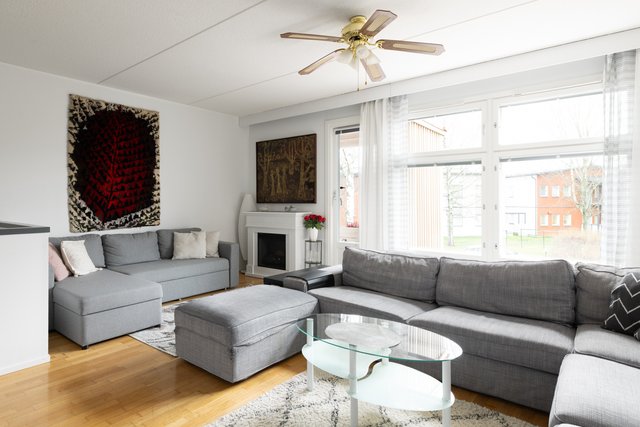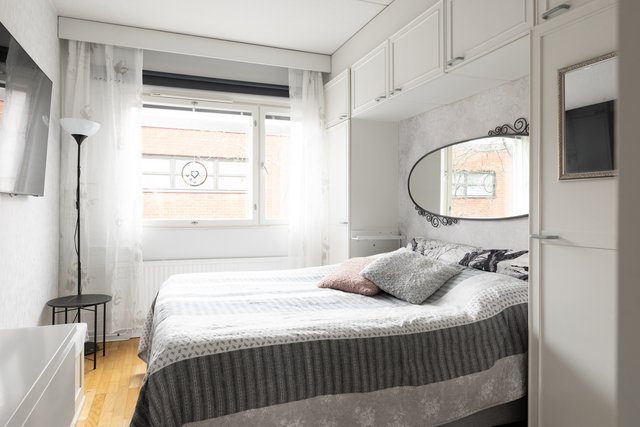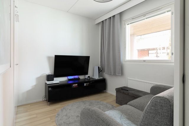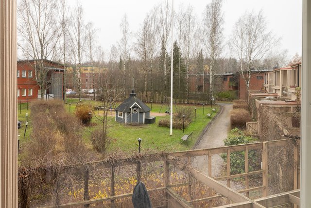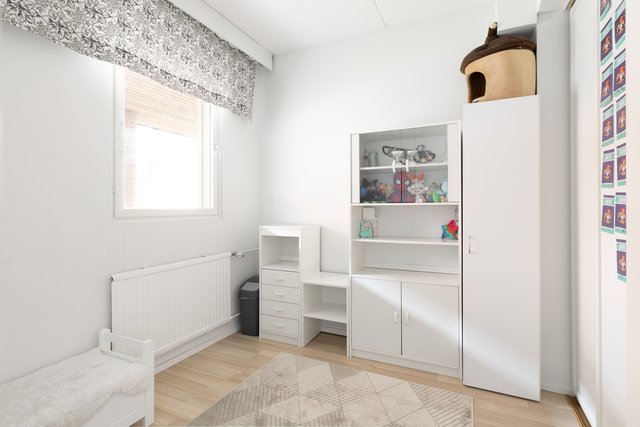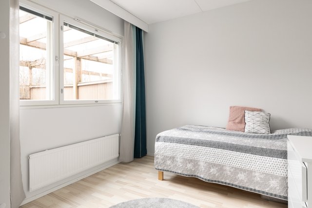 Yläkerran ikkunoista tulvii valoa läpi päivän, ja valoisasta olohuoneesta on helppo nauttia aamusta iltaan. Olohuoneen jatkeena avautuu tilava parveke. Erillinen keittiö tarjoaa rauhallisen paikan ruoanlaitolle ilman, että se rajoittaa oleskelutilaa. Keittiössä on runsaasti kaappi- ja laskutilaa sekä tilaa ruokailuryhmälle. Yläkerrasta löytyy lisäksi hyvän kokoinen makuuhuone ja erillinen wc, jotka tekevät kokonaisuudesta erittäin toimivan arjessa