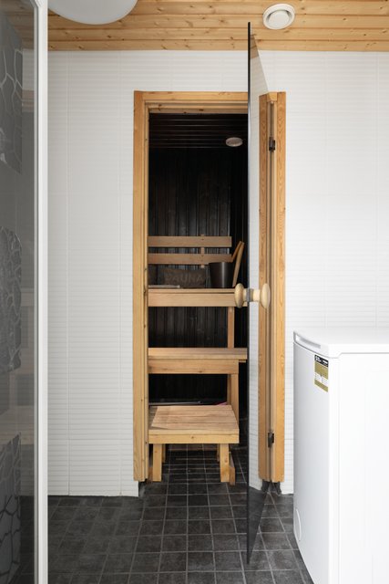 Sisääntulokerroksessa on kolme makuuhuonetta, jotka muuntuvat tarvittaessa myös työhuoneiksi, harrastetiloiksi tai vaikkapa vierashuoneiksi. Tilava kylpyhuone tarjoaa tilat omalle pyykkihuollolle, ja rentoutumisesta huolehtii oma sauna. Erillinen wc helpottaa arkea, eikä säilytystilasta ole puutetta varaston ansiosta.