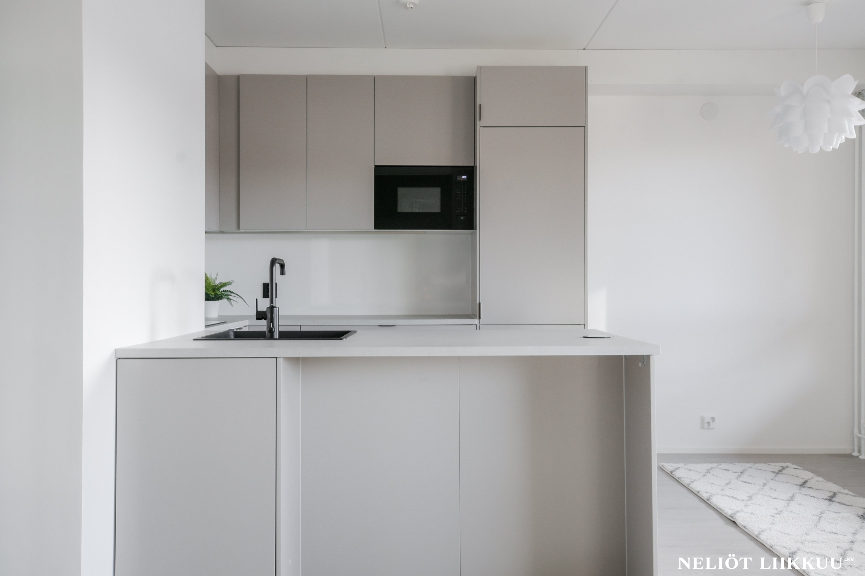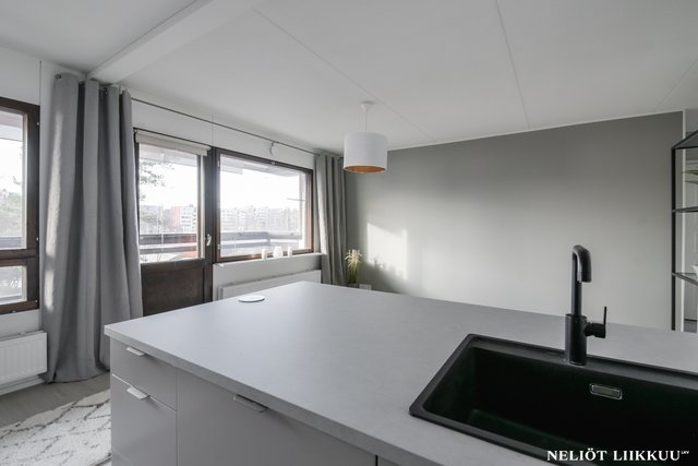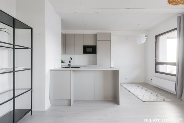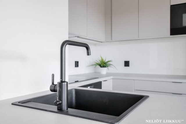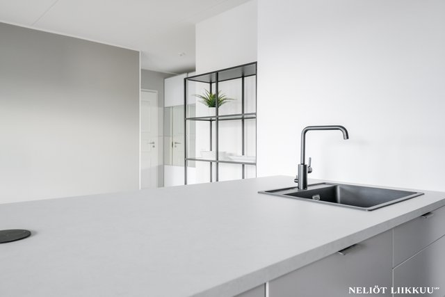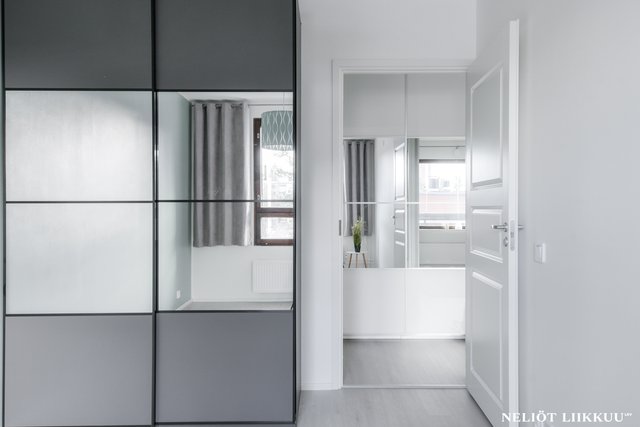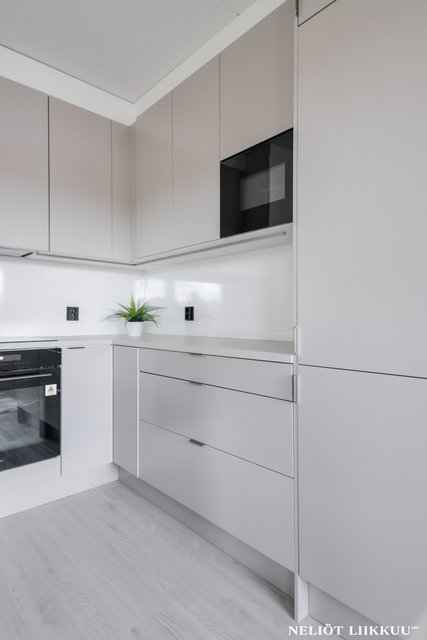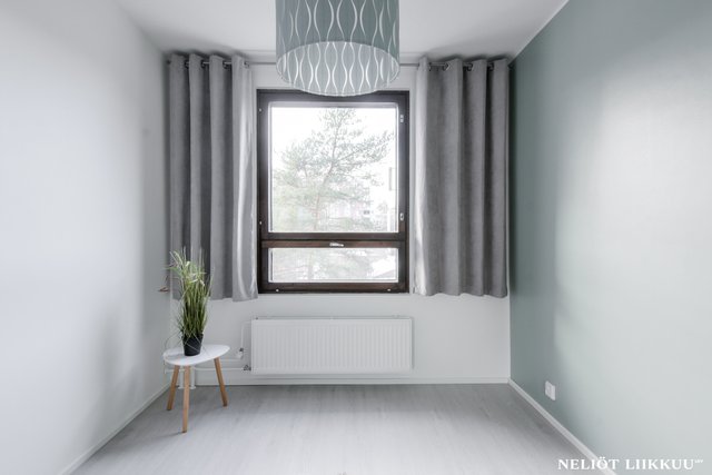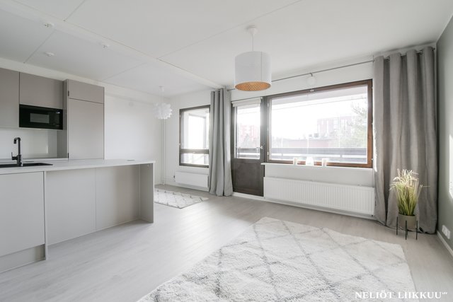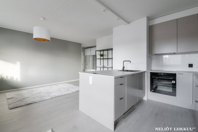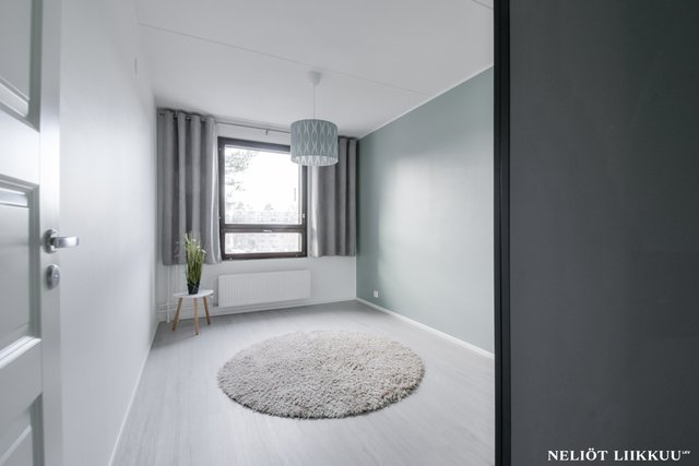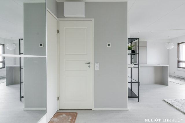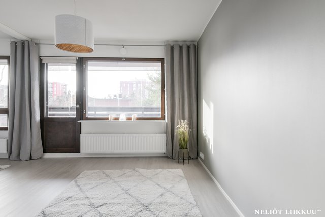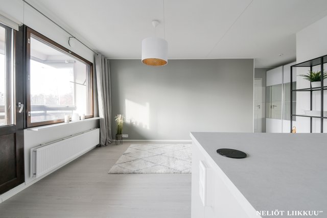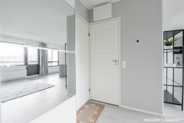 Koko huoneisto on päivitetty laadukkain materiaalein. Lattiat on uusittu tyylikkäällä ja kestäväksi suunnitellulla vinyylilankulla, joka tuo tiloihin harmonisen ja modernin ilmeen. Pohjaratkaisu on selkeä ja helppo sisustaa, ja jokainen neliö palvelee arkea tehokkaasti.