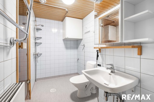 - WC-istuin, pesukoneliitäntä, peilikaappi, ja suihku