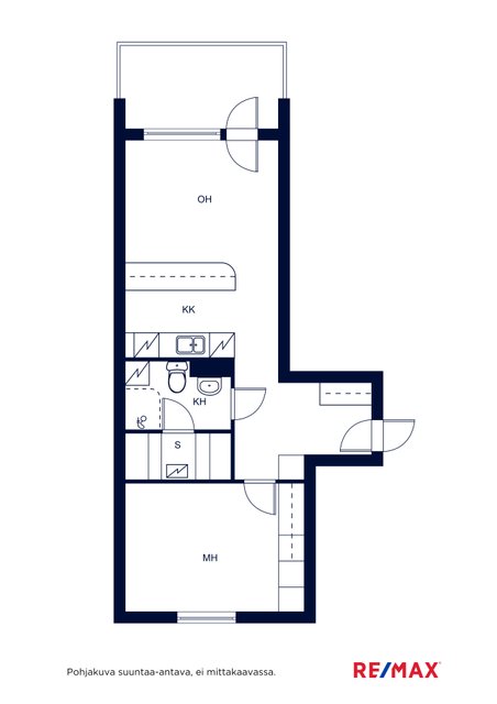 Oh, avokeittiö, mh, kph, s ja lasitettu parveke länteen