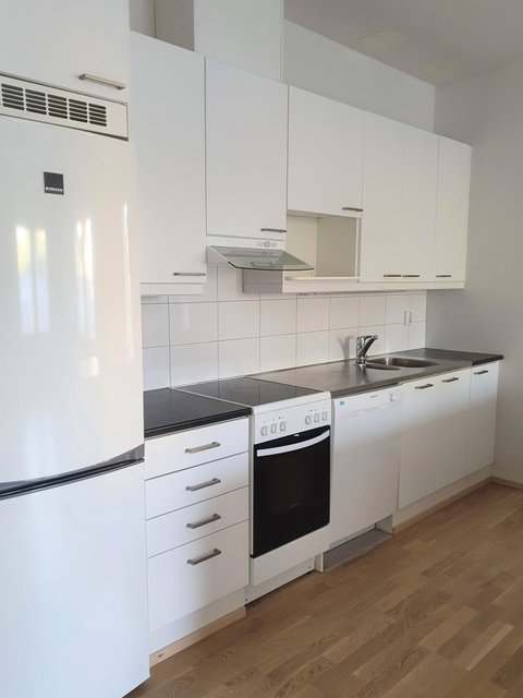 Valoisa, ensimmäisen kerroksen kaksio Vuoreksesta nyt tarjolla. Vuonna 2016 valmistunut hissitalon asunto tarjoaa puitteet huolettomaan asumiseen. Omalla terassi tuo lisäneliöitä lämpimään vuodenaikaan.