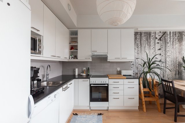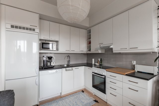 - Jääkaappipakastin, liesi, liesituuletin, ja astianpesukone