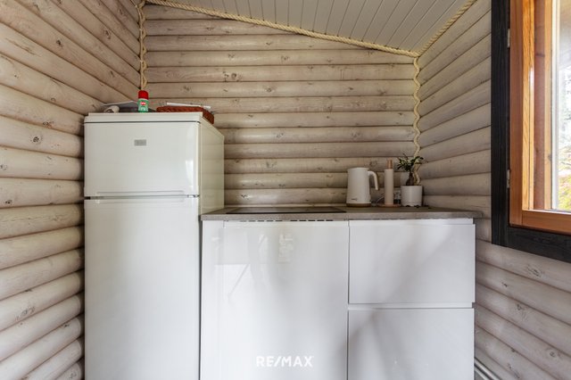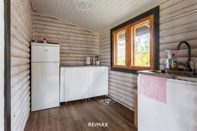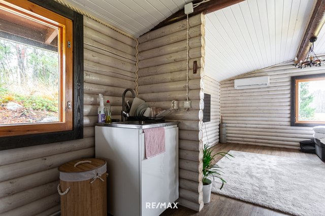 Mökissä on tehty viime vuosina kattavasti uudistuksia: keittiö on saanut uuden ilmeen kalusteineen, kylpyhuone on kokonaan remontoitu ja ilmalämpöpumppu tuo asumiseen energiatehokasta mukavuutta. Puulämmitteinen takka luo lämpöä ja tunnelmaa, ja lattialämmitys kylpytiloissa viimeistelee arjen helppouden.