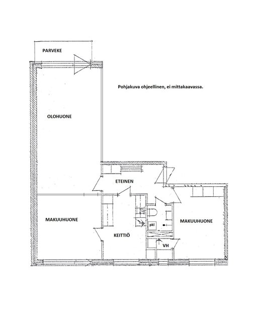 - Ei tarkistusmitattu. Pinta-alat saattavat tämän ikäisissä kohteissa (yhtiö rekisteröity ennen 01.01.1992) poiketa olennaisestikin asuinrakennusten nykyisten mittaustapojen ja standardien (SFS 5139) mukaan laskettavasta asuintilojen pinta-alasta. Pinta-ala voi siis olla edellä mainittua pienempi tai suurempi.