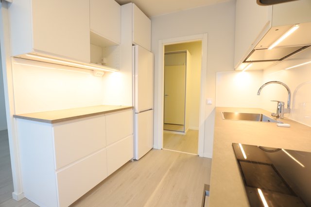 Asunnon tilaratkaisu on toimiva, ja kaksi makuuhuonetta tarjoavat tilaa perheelle tai etätyöskentelyyn. Käytännöllinen vaatehuone, uudet kaapistot ja kellarikomero tuovat lisää säilytystilaa.