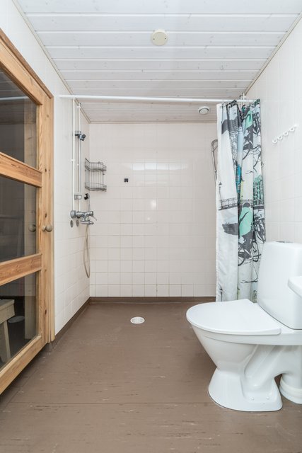 - WC-istuin, suihku, pesukoneliitäntä, pesuallas, peilikaappi, ja pyyhekuivain (vesikiertoinen)