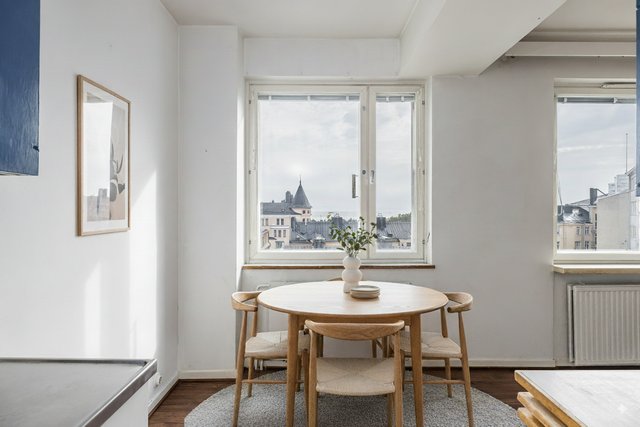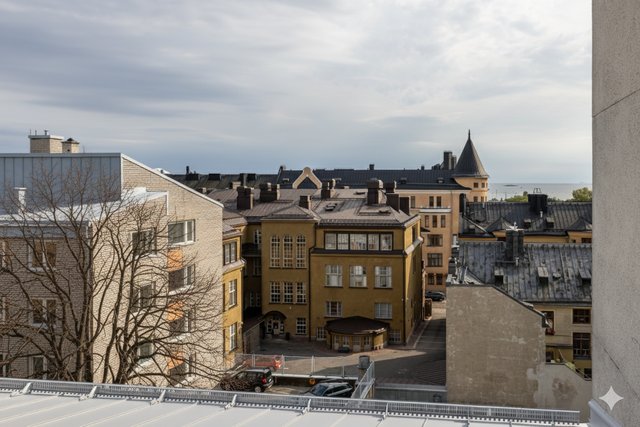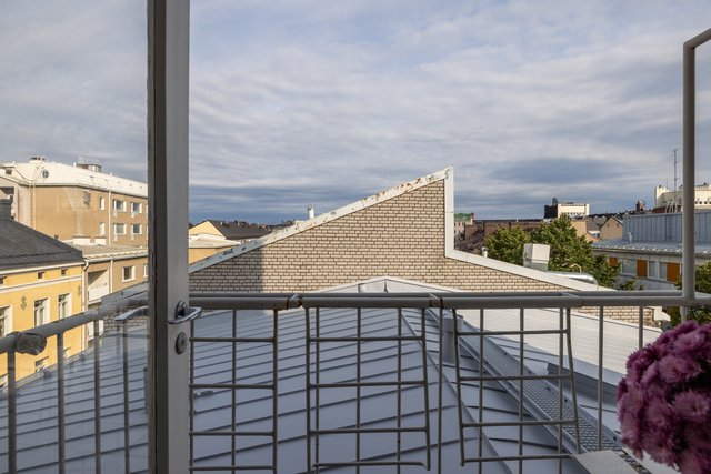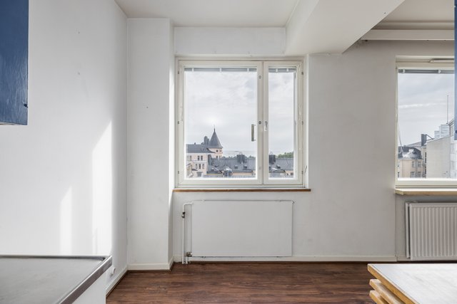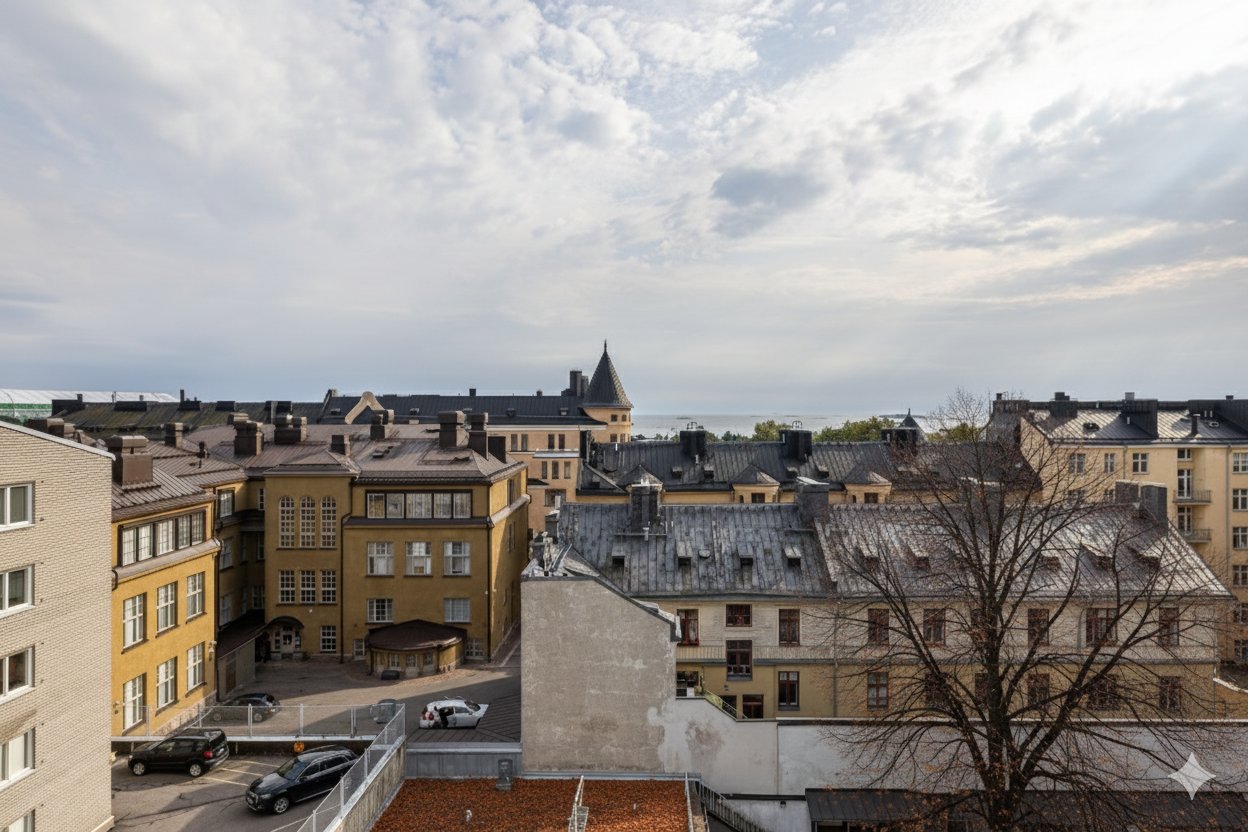 Mitkä maisemat! Tässä seitsemännen kerroksen 32 neliömetrin yksiössä avautuu harvinainen ja esteetön näkymä Ullanlinnan kattojen yli aina merelle asti. Tämän tunnelman ja näköalan lumon voit kokea parhaiten paikan päällä!
