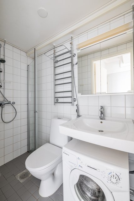 Asunnossa on erittäin järkevä pohja, josta on helppo remontoida juuri omannäköisesi, tyylikäs koti. Kylpyhuone on remontoitu putkiremontin yhteydessä vuonna 2012, ja sinne mahtuu pieni pyykinpesukone. Jos pyykkimäärät kasvavat, taloyhtiössä on myös käytössäsi nykyaikainen pesutupa ja kuivaushuone.