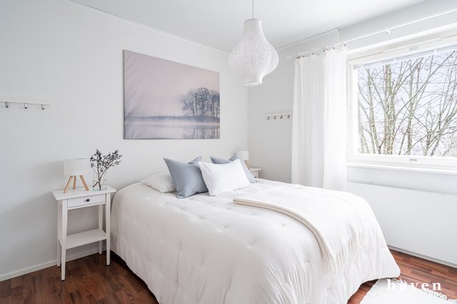 - Makuuhuoneessa runsaasti säilytystilaa, jota tuovat kaapit sekä iso vaatehuone.