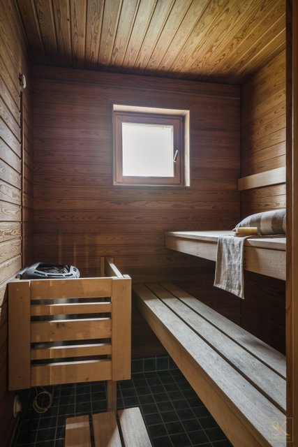 Keittiö on käytännöllinen kivitasoineen ja sen voi halutessaan avata olohuoneeseen. Kylpyhuone ja oma sauna tuovat ripauksen arjen luksusta, erillinen wc helpottaa perheen elämää ja makuuhuoneissa on runsaasti säilytystilaa.