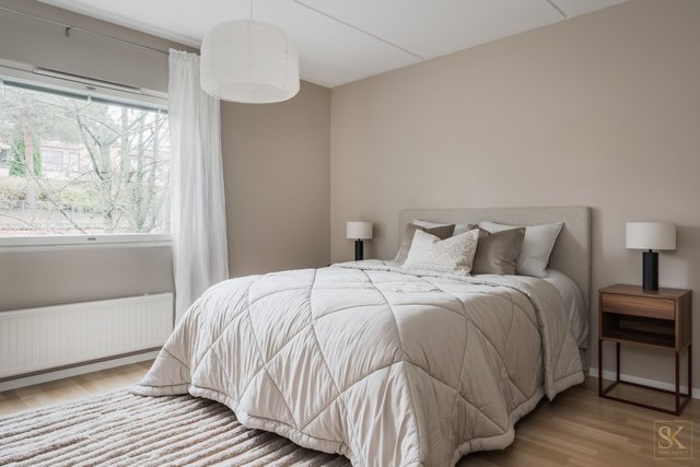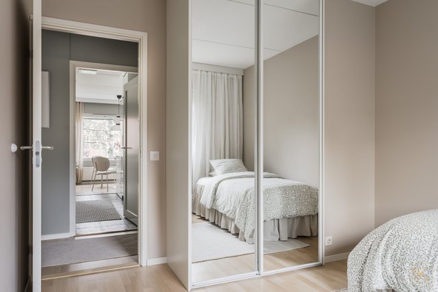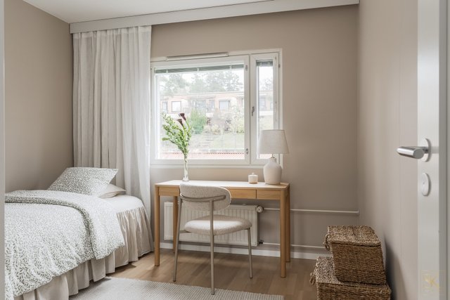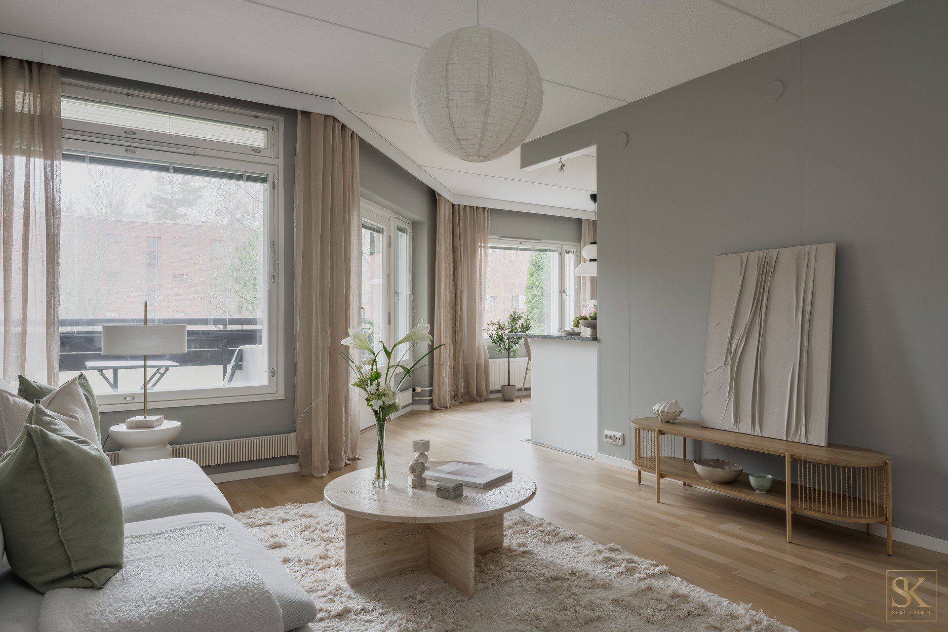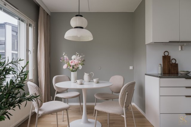 Tämä toisen kerroksen koti tarjoaa tilaa ja toimivuutta arvostetulla alueella. Pohjaratkaisu on käytännöllinen: kaksi tilavaa makuuhuonetta, avara olohuone sekä ruokailutila, jonne mahtuu isompikin pöytä. Olohuoneesta avautuu rauhallinen näkymä vehreälle sisäpihalle, ja lasitettu parveke toimii lisähuoneena keväästä pitkälle syksyyn.