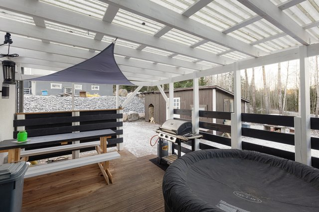 Tilava 1 020 neliön tontti tarjoaa runsaasti mahdollisuuksia puutarhanhoitoon, oleskeluun tai lasten leikkeihin. Uudehko terassi kutsuu nauttimaan kesäpäivistä ja -illoista omassa rauhassa.