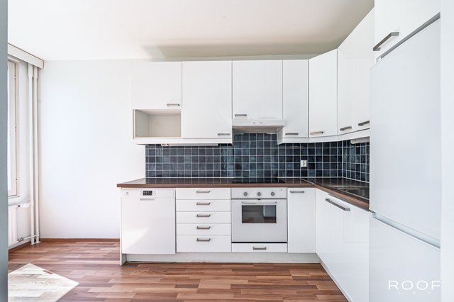 Valoisa kaksio neljännessä kerroksessa korkealla mäen päällä – avarat näkymät ja merisiluetti olohuoneesta asti! Asunnossa on tilava olohuone, johon mahtuu hyvin sohvaryhmä ja muuta kalustusta. Keittiöön mahtuu ruokapöytä, ja lasitettu parveke tuo lisätilaa ympäri vuoden.