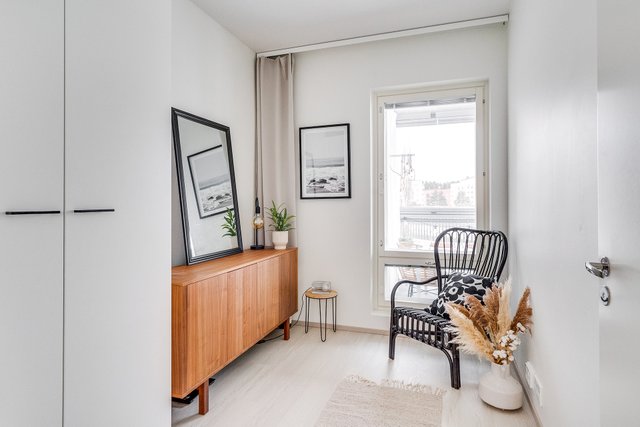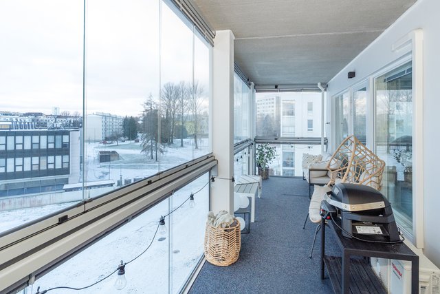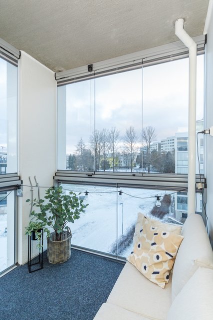 Nyt vapautumassa todella valoisa viidennen kerroksen huoneisto. Asunnossa on normaalia korkeampi huonekorkeus, joka lisää tilantuntua entisestään. Lisäksi asunnossa on paljon ikkunapinta-alaa joka täytyy kokea paikan päällä. Keittiöön on lisätty rakennusvaihdeessa kaappi- sekä laskutilaa ja ruokailutilaan mahtuu suurempikin ruokailuryhmä. Olohuoneesta on käynti isolle lasitetulle parvekkeelle, joka antaa mahdollisuuden moneen käyttötarkoitukseen. Kaksi makuuhuonetta sijoittuu eri puolille huoneistoa tuoden lisää yksityisyyttä. Säilytystilastakaan ei tarvitse huolehtia, sillä molemmissa makuuhuoneissa on kaapistot. Kylpyhuoneesta löytyy tilaa kodinhoidolle ja sen kruunaa oma sauna. Erillinen wc helpottaa kiireistä arkea ja ilmalämpöpumppu lisää asumismukavuutta. Tämä upea asunto täytyy nähdä paikan päällä!