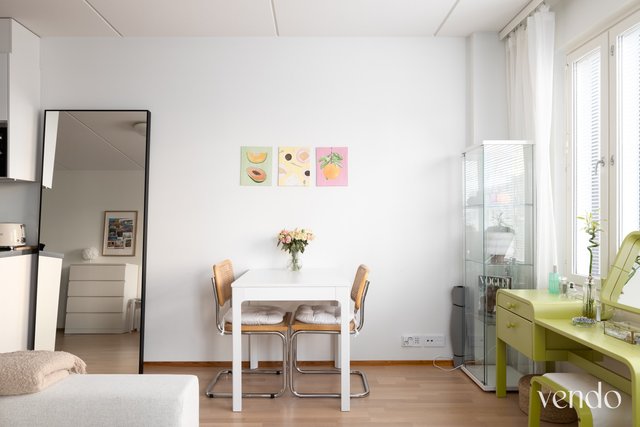 Tyylikäs saunallinen kaksio sopivilla neliöillä. Yhtenäinen keittiö- ja olohuonetila sekä kivan kokoinen lasitettu parveke. Asunnossa on vesikiertoinen lattialämmitys yhdistettynä kaukolämpöön.