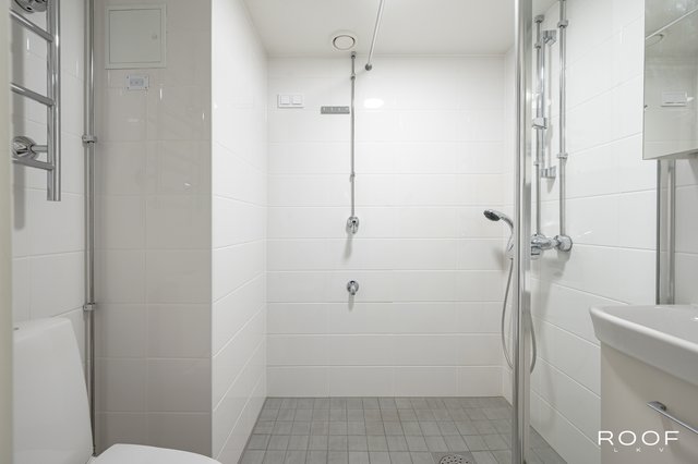 - VARUSTUS:Suihku Suihkuseinä Wc istuin Pesukoneliitäntä Hana Allas Peilikaappi Allaskaapisto Lattialämmitys SEINÄT: Laatta LATTIA: Laatta