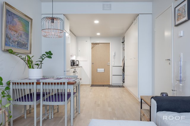 Tervetuloa viihtymään tähän vuonna 2023 valmistuneeseen kaksioon, joka tarjoaa laadukasta asumista erinomaisella sijainnilla Espoon Olarissa. Seitsemännen kerroksen koti on valoisa ja rauhallinen ja lounaan suuntaan avautuva lasitettu terassi toimii lisäoleskelutilana keväästä pitkälle syksyyn.