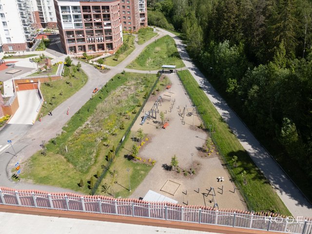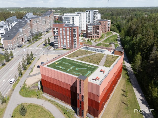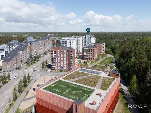 Modernin taloyhtiön palvelut viimeistelevät asumismukavuuden: hissillinen rakennus, yhteinen sauna, talopesula ja kuivaushuone, kerhohuone, pyörävarasto – ja jopa minigolfkenttä. Autopaikka myydään omina osakkeina.