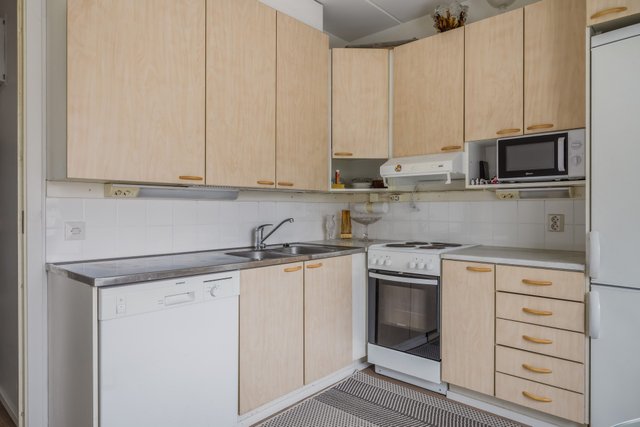 - Keittiön kaapistojen ovet on vaihdettu. Tilaan mahtuu ruokailuryhmä. Laminaattilattia uusittu ja seinät maalattu 2022.