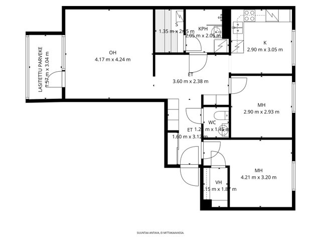 - Yhtiöjärjestyksen mukainen, Isännöitsijäntodistuksen mukainen, (Pinta-ala ei ole tarkistusmitattu ja todellinen pinta-ala voi olla suurempi tai pienempi, kuin ilmoitettu)