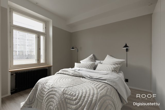 Korkeat huoneet ja isot ikkunat tekevät asunnosta avaran ja valoisan, ja itään avautuva sisäpihanäkymä tarjoaa yksityisyyttä ja levollisuutta keskellä kaupunkia. Kaikki keskustan palvelut, ravintolat ja liikenneyhteydet ovat vain askeleen päässä.
